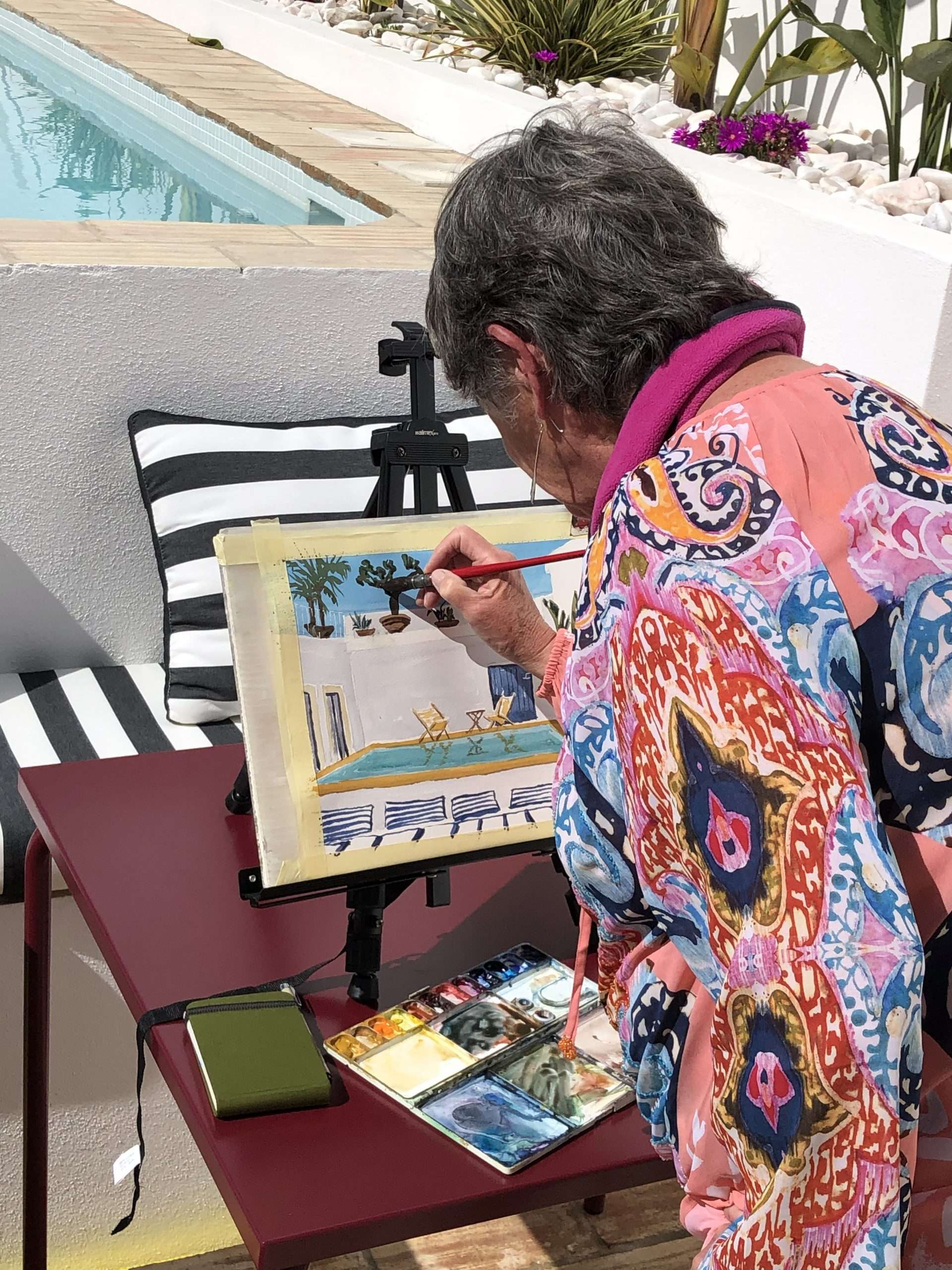 Dawn Oliver – With 27 years experience teaching drawing and painting classes to adults of all abilities and teaching painting holidays all over Europe for 25 years. Dawn has a fun approach and likes to demonstrate and share many techniques in watercolour which can be used for any level of painting experience throughout the holiday and indeed in future paintings.