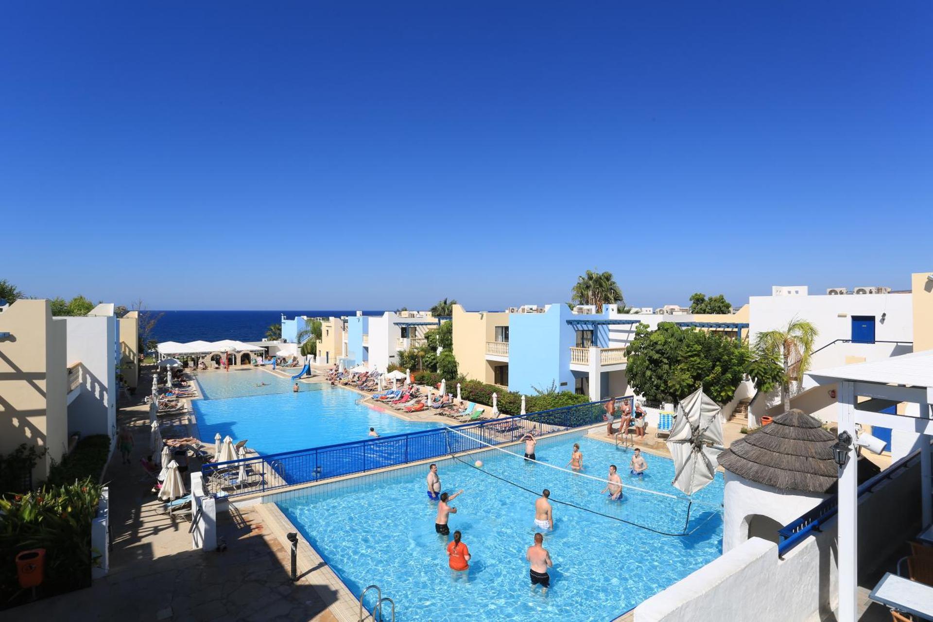 Eleni Holiday Village is a 4-star resort in Chlorakas offering spacious rooms, landscaped pools, a fitness centre, spa facilities, tennis courts, restaurants, and bars. With indoor and outdoor leisure options and comfortable accommodation, it provides a relaxing and well-equipped base for guests seeking peace, comfort, and convenience.