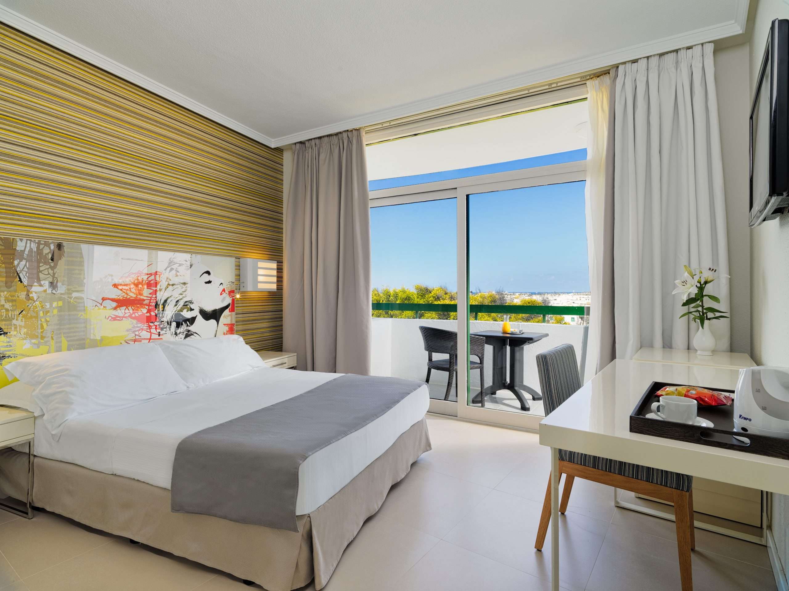 The smart new rooms, decorated in cool neutrals, are minimalist in style, yet very comfortable, with a good sized bathroom, private terrace or balcony, TV with satellite coverage, Air-conditioning, Mini Bar, safe, Kettle and Hairdryer. A laundry service may also be available upon request.