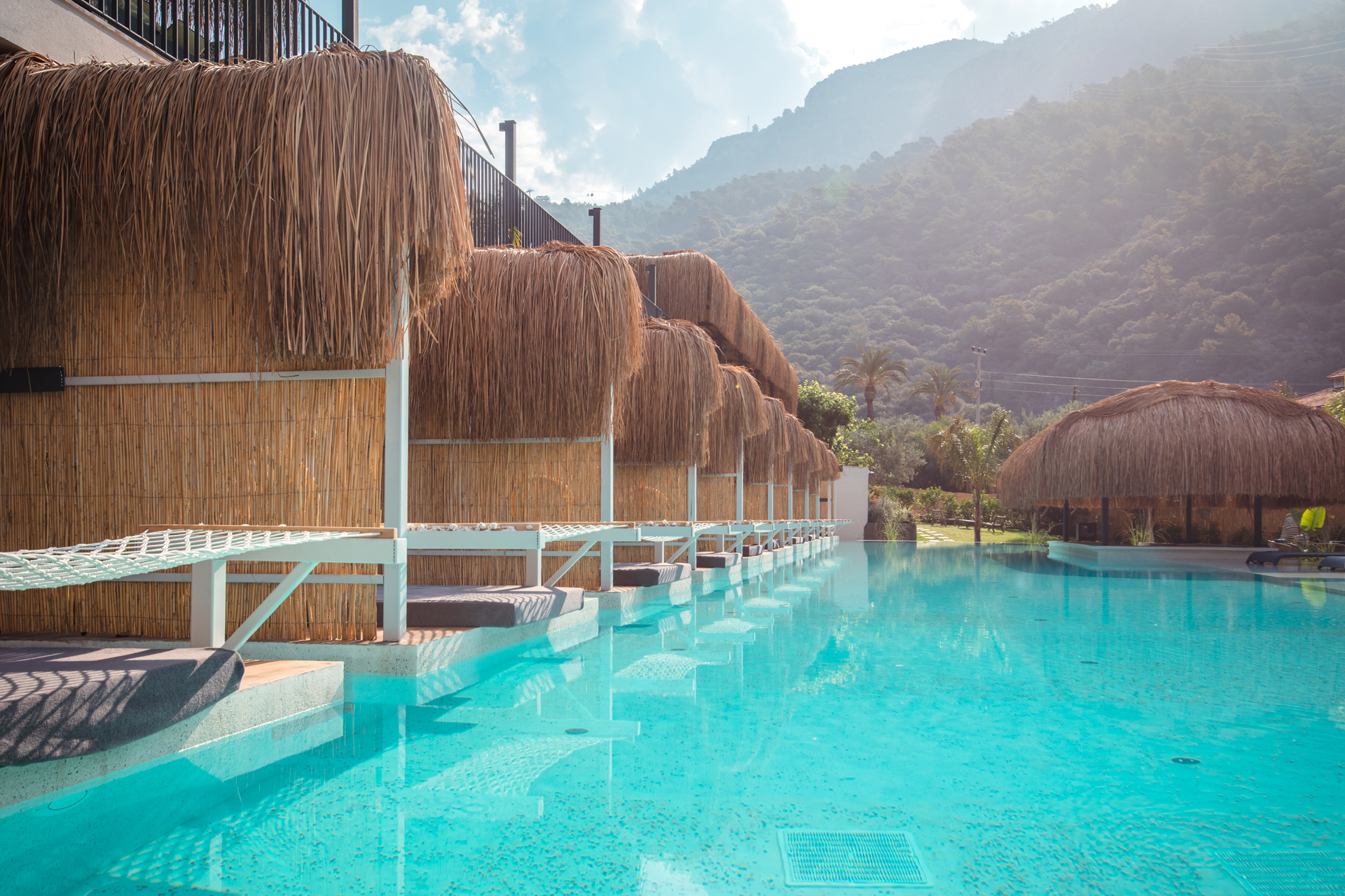 Ölüdeniz is one of the most famous beach areas in Turkey. It can be seen in many of the TV and Billboard advertisements for Turkey and we are pleased to offer a boutique hotel in this beach area for 2024. Ölüdeniz, a picturesque coastal resort nestled on Turkey’s southwestern Turquoise Coast, is a captivating destination that effortlessly blends natural beauty with modern amenities. The resort’s main attraction is the stunning Blue Lagoon, a sheltered cove with crystal-clear waters, backed by dramatic limestone cliffs. It’s a haven for beach lovers and water sports enthusiasts, offering opportunities for paragliding, scuba diving, and boat trips to explore nearby islands. The charming village of Ölüdeniz boasts a vibrant atmosphere with numerous restaurants, bars, and shops catering to visitors. Whether you seek adventure or relaxation, Ölüdeniz promises an unforgettable holiday experience amid its breathtaking surroundings.