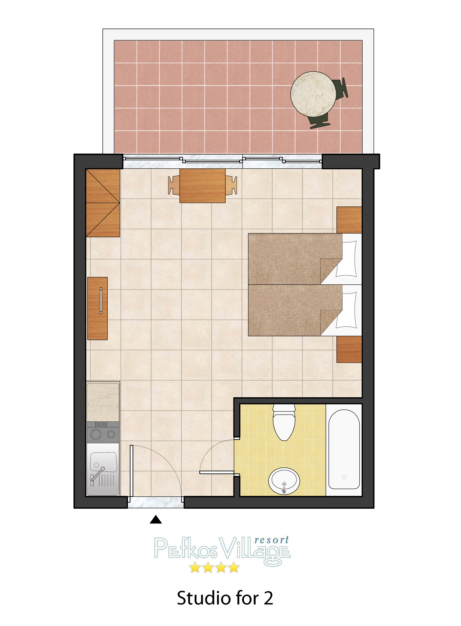 The standard bedrooms were newly refurbished in January 2025 and feature a fridge, hairdryer and kettle. The bathrooms are fitted with a walk-in shower and toiletries are supplied. Each room has a private balcony or terrace, complete with a table and chairs, perfect for relaxing outdoors. These rooms are located on the 1st floor.